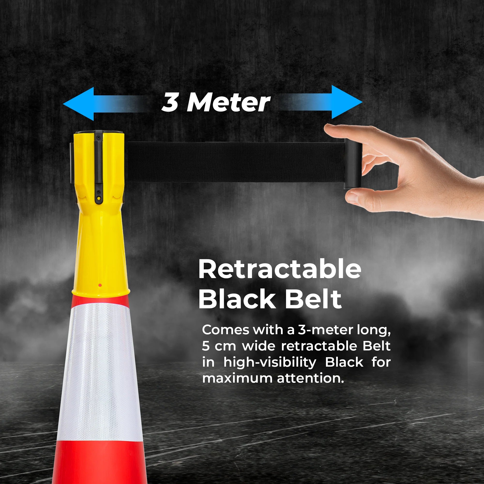 Extended Size:3 MeterBelt Dimension:3000x50 MMMaterial: Plastic & NylonColor: Yellow and BlackWeight: 0.950 KgCompatible: Universal Fit for Standard Cones