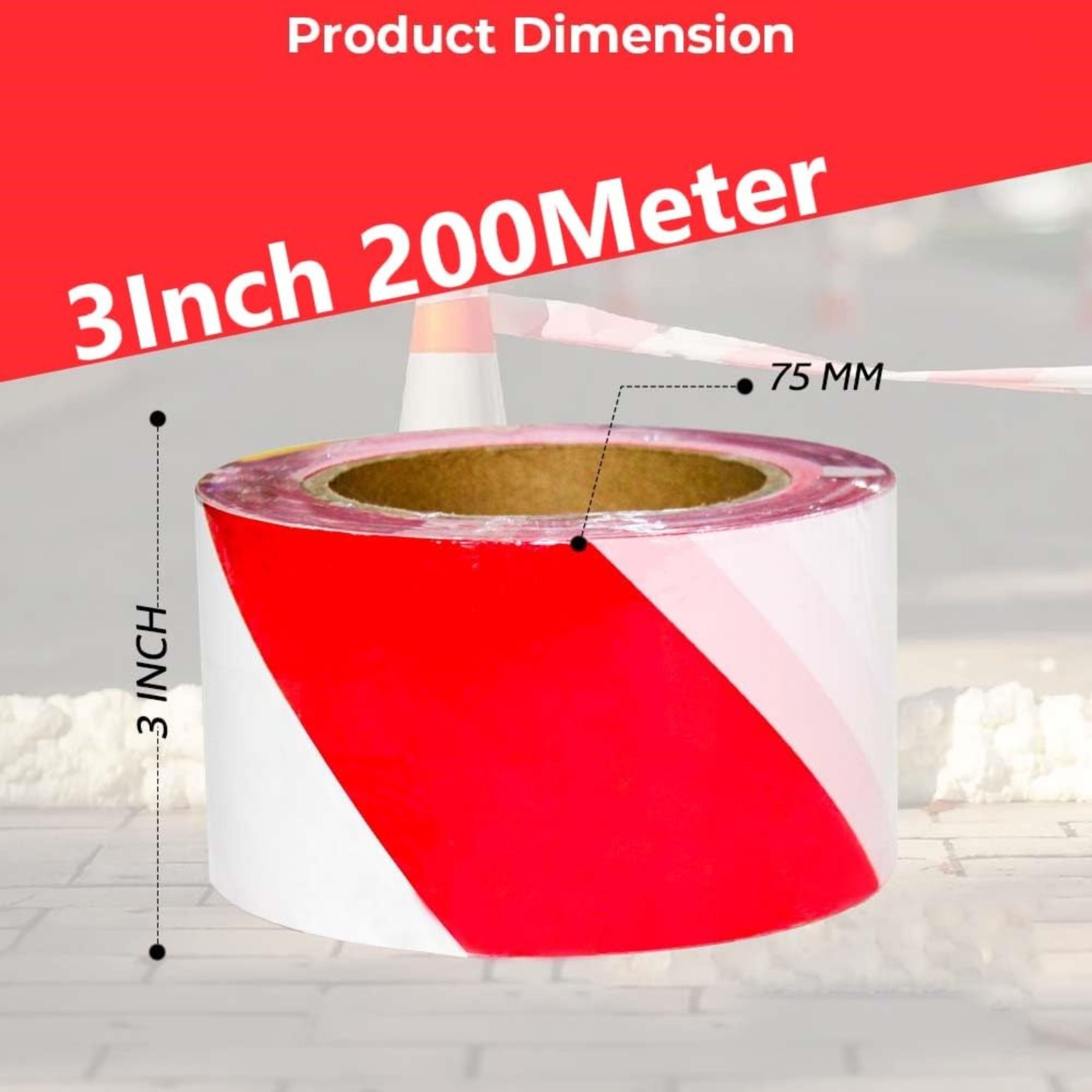 This barrier tape is 3 inches (75mm) wide and 200 meters long, making it suitable for covering large areas quickly.