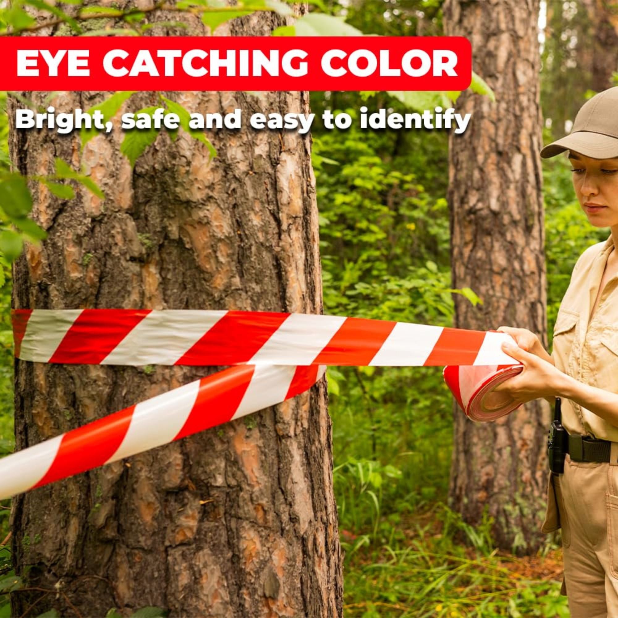 Red and white barrier tape is used to mark hazardous or restricted areas in construction sites, events, warehouses, and public spaces to warn people and improve safety.