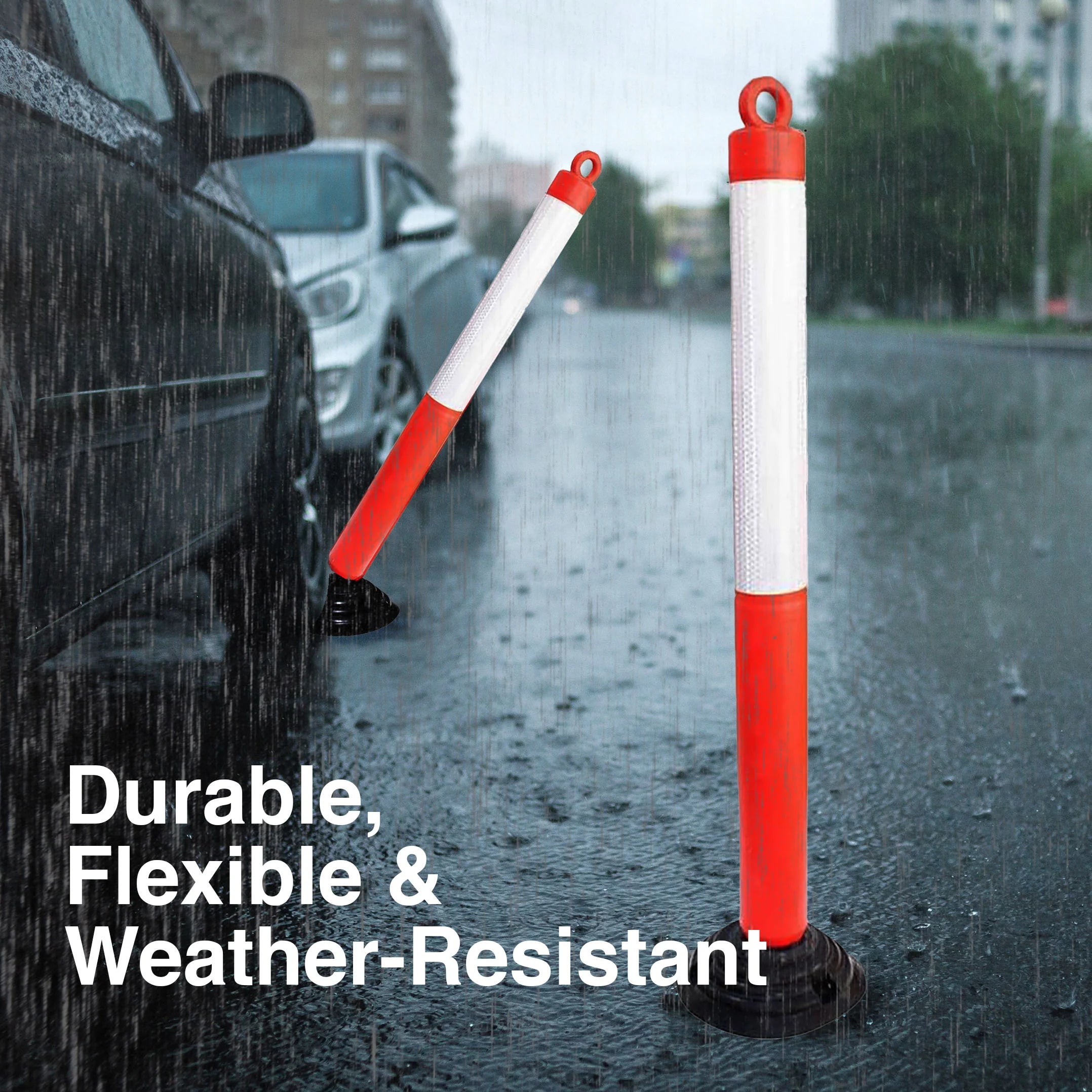 High visibility 1 big reflective stripe. Flexible, durable body and base. No damage upon impact with reactive spring Body Size: 120 x 26 cm Material: Plastic Installation: 3 pcs screw (not included) Weight: 2.6 KG