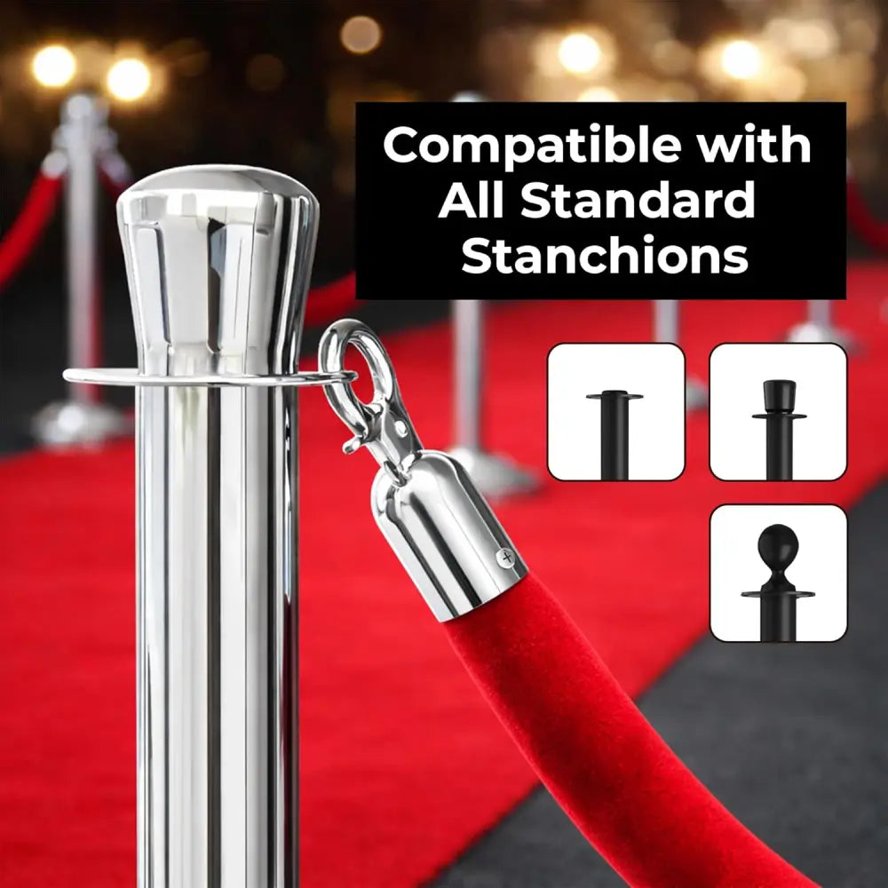 إن حبل الحاجز المخملي الأحمر بطول 1.5 متر مع خطافات فضية مصمم لتنظيم الطوابير وإدارة الحشود في الفعاليات والفنادق ودور السينما والمعارض والأماكن العامة. يتميز الحبل بطبقة خارجية مخملية مع قلب داخلي معزز يوفر أداءً موثوقًا للاستخدام اليومي. بطول يبلغ 1.5 متر وقطر تقريبي 3.5 سم، يساعد الحبل في إنشاء حاجز واضح واحترافي عند توصيله بين أعمدة تنظيم الطوابير. كما يأتي الحبل مزودًا بخطافين معدنيين فضيين من نوع Snap Hook يتيحان التثبيت والفك بسهولة وسرعة من أعمدة الحواجز القياسية، مما يجعله مناسبًا لتنظيم الطوابير وتحديد المناطق المقيدة داخل الأماكن الداخلية.