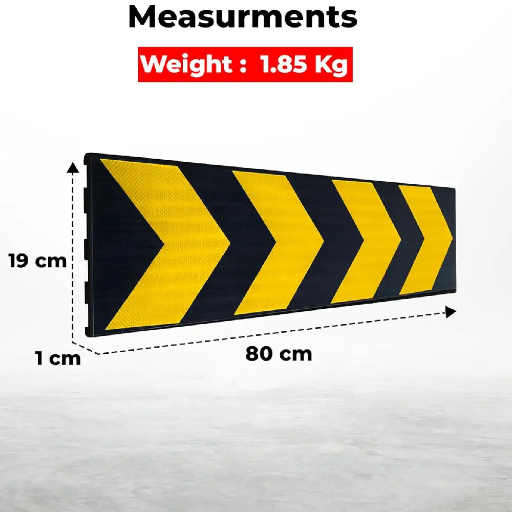 The 80CM Rubber Wall Guard with Yellow Reflective Arrows is designed to protect walls and vehicles from damage in parking areas and tight spaces. Made to absorb impacts from car doors and vehicle movement, this wall guard helps prevent scratches, dents, and surface damage. The black rubber body combined with bright yellow reflective arrows improves visibility for drivers and guides vehicles when parking. Its compact 80 cm length makes it suitable for installation on walls, pillars, and corners in garages and parking facilities. The guard performs reliably in both indoor and outdoor environments and is commonly used in residential garages, commercial parking spaces, industrial loading docks, and workshops where wall protection and driver guidance are required.