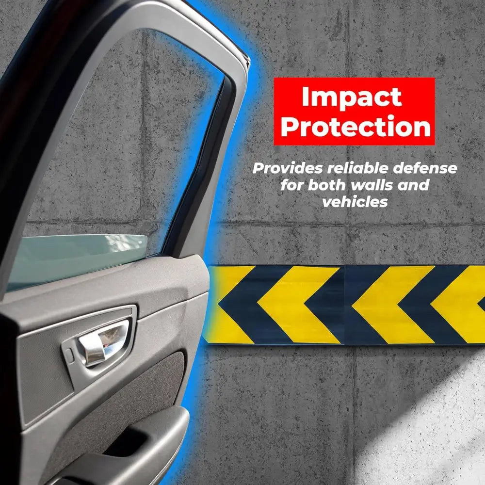 A rubber wall guard protects walls and vehicles from scratches, dents, and impact damage in garages, parking lots, and loading docks.